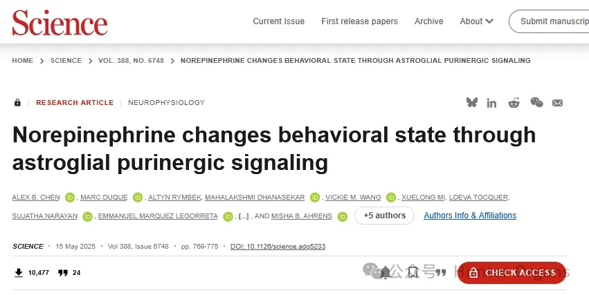 本研究利用斑马鱼,首次揭示了去甲肾上腺素(NE)调控行为状态转换的一种全新机制:它并非直接作用于神经元,而是优先激活星形胶质细胞,进而通过星形胶质细胞释放的ATP/腺苷嘌呤信号,间接抑制神经元活动、驱动行为静默,确立了星形胶质细胞嘌呤能信号在去甲肾上腺素(NE)介导的行为抑制中的核心作用,并阐释了NE通过星形胶质细胞释放ATP并转化为腺苷的分子通路,最终抑制行为的全过程。这不仅填补了神经调质理论中胶质细胞角色的空白,也为理解脑状态转换提供了全新视角。